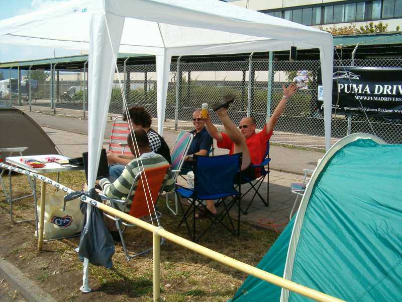 Toen was het uiteindelijk tijd om ons bedje..tentje.. in te duiken. R.A.T. Racing had geen zin om zijn tent op te zetten, dus die sliep lekker in zijn Puma.