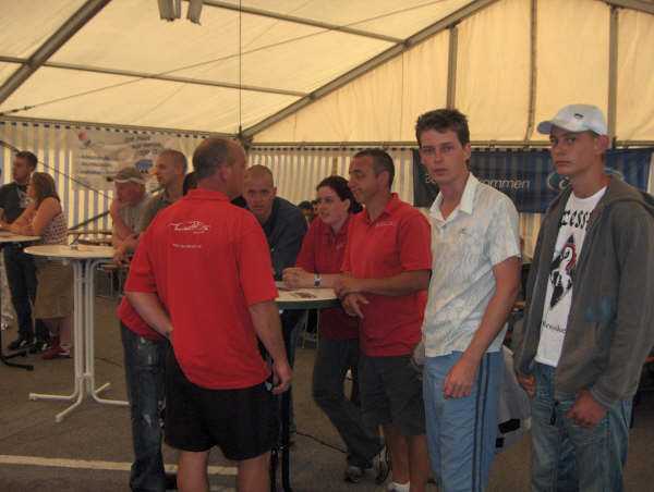 Om een uurtje of 9 ’s avonds op naar de feesttent. Helaas hadden we net de uitreiking voor de clubs gemist, maar met een lieve glimlach en een paar mooie woorden van PumaMartin toch nog een t-shirt gekregen! Tijd voor een drankie. Het was zeer gezellie. Ook leuk dat PumaMartin zijn camera bij zich had. Voor onze Belgische vrienden, Kristof, Kristof de 2e en Kristof de 3e (dat was makkelijker dan te onthouden dat Kristof de 3e eigenlijk Derrek-Jan ofzoiets heette, haha), was het Duitse bier wel wat wennen. Maar na een paar pintjes proef je daar niets meer van he!!