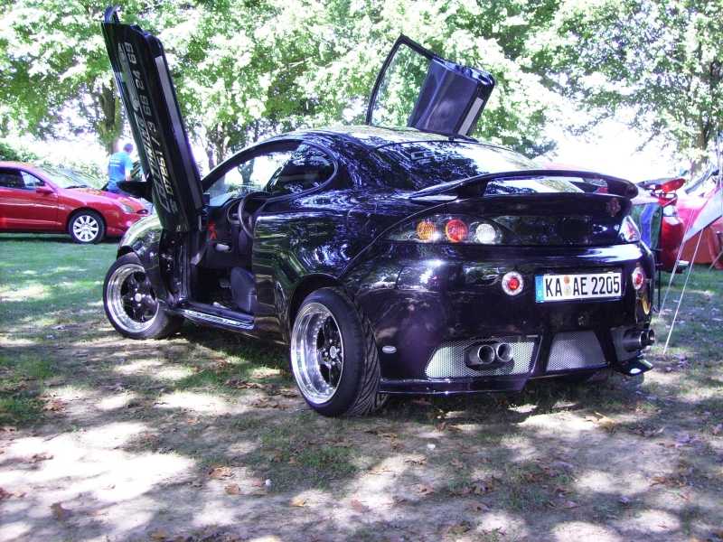 Tijd voor de tombola: Het dochtertje van Viola uit Duitsland kreeg de eer om de lootjes te trekken. Martin deed het woord en ik maakte iedereen blij met leuke prijzen. De derde prijs van Autostyle, de neon Autostyle clock, heb ik zelf gewonnen. Stond er leuk bij de neoncontest, hihi. De tweede prijs, ook van Autostyle, de stroboscoop lampenset werd door een van de Duitse Pumafreunden gewonnen en de hoofdprijs, de verlagingsveren (eveneens van Autostyle) waren voor onze eigen Arjan. En niet te geloven, maar Arjan ging er ook vandoor met onze special prize, de prachtige Puma airbrush van onze airbrusher, The Morning Star.