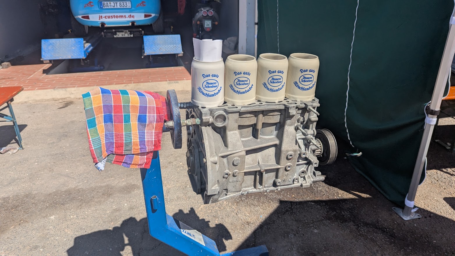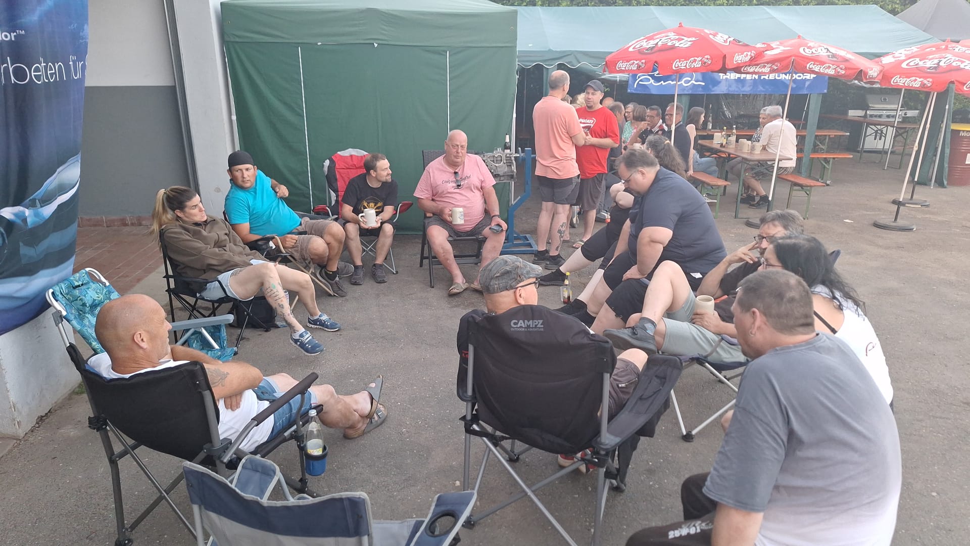 De werkplaats zorgde iig voor iets aan verkoeling. Dus lekker rustig blijven en genieten van een, of twee lekkere koude potten Beiers bier.